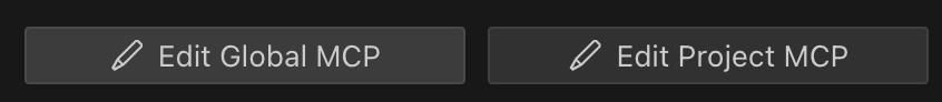 Edit Global MCP: Opens the globalmcp_settings.jsonfile.Edit Project MCP: Opens the project-specific.roo/mcp.jsonfile. If this file doesn't exist, Roo Code will create it for you.
